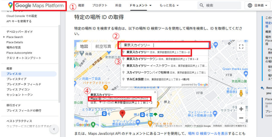 - 「Place ID」(英数字の羅列)をコピーする